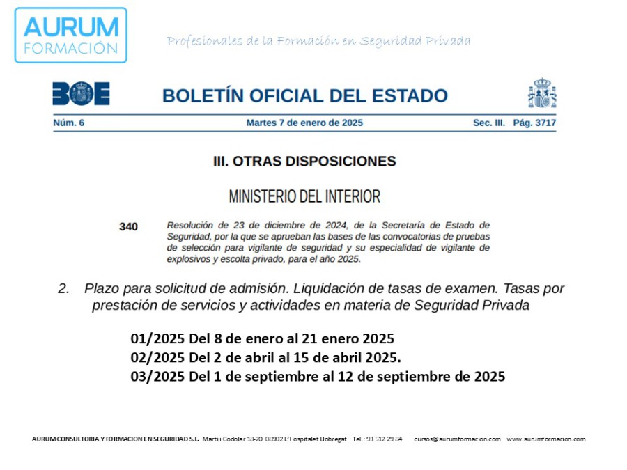 Curso Vigilante Seguridad: por convocatorias BOE o por Certificado de Profesionalidad.